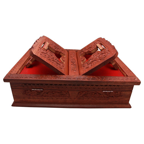 Wooden Hand Carved Holy Books Stand Box with Angoori Design