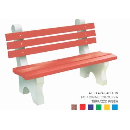 Each Bench Consists of 2 Nos. L-Shaped Base Support in Grey Cement Colour (Thickness: 100 mm, Back Height: 1000 mm, Front Height: 450 mm, Base Width: 620 mm) and 5 Nos. Reinforced Concrete Planks in red color of size 1500 mm X 100 mm X 50 mm.
