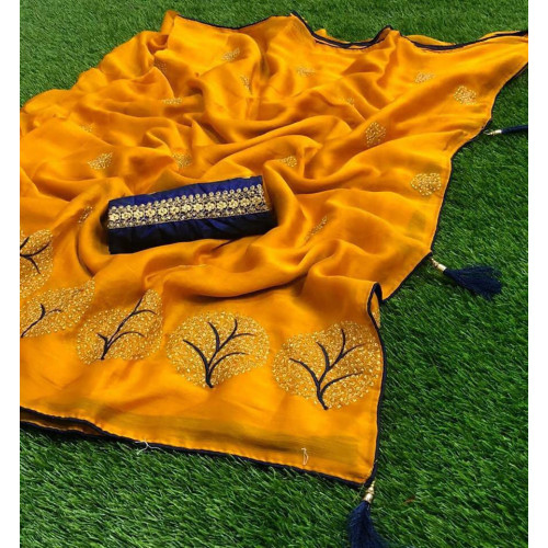 New Saree Collection In Heavy Moss Chiffon Fabric With Extra Ordinary Embroidery Zari With Multi Thread Work In All Over Saree